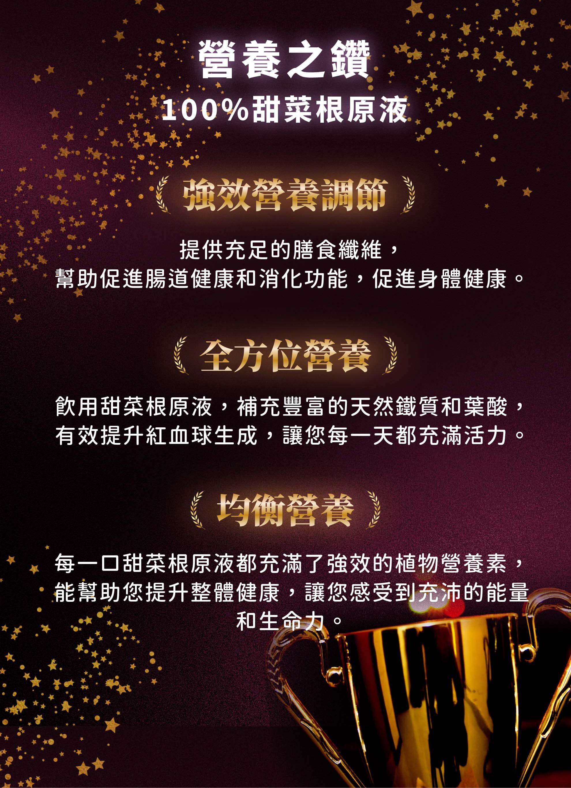無加糖、無加水、非濃縮,100%甜菜根原汁,每日補充100毫升補足植化素營養,也可與綜合蔬果汁或是水果汁混合飲用,或是搭配實行輕斷食首選,每天飲用多元蔬果植化營養素,液態吸收快,每日蔬果養生保健全家都能飲用。