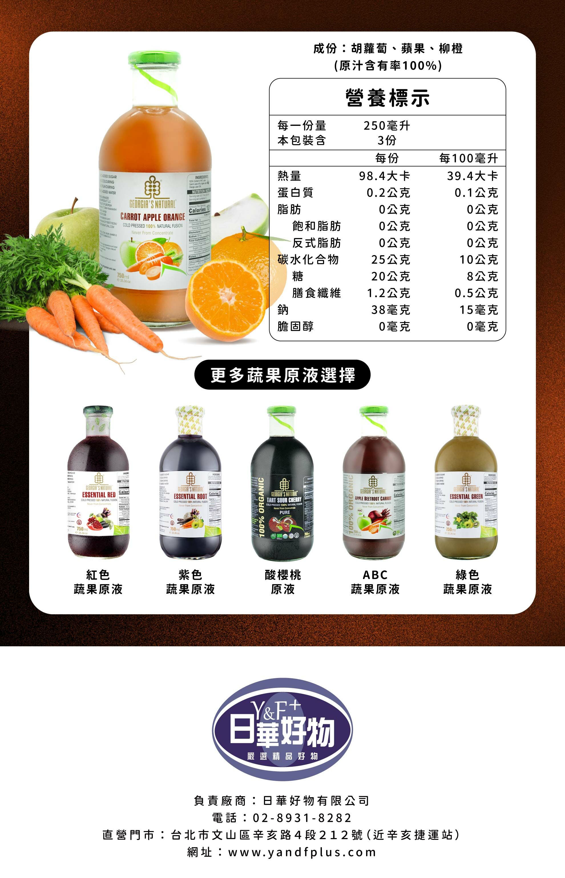 成份:胡蘿蔔、蘋果、柳橙(原汁含有率100%)