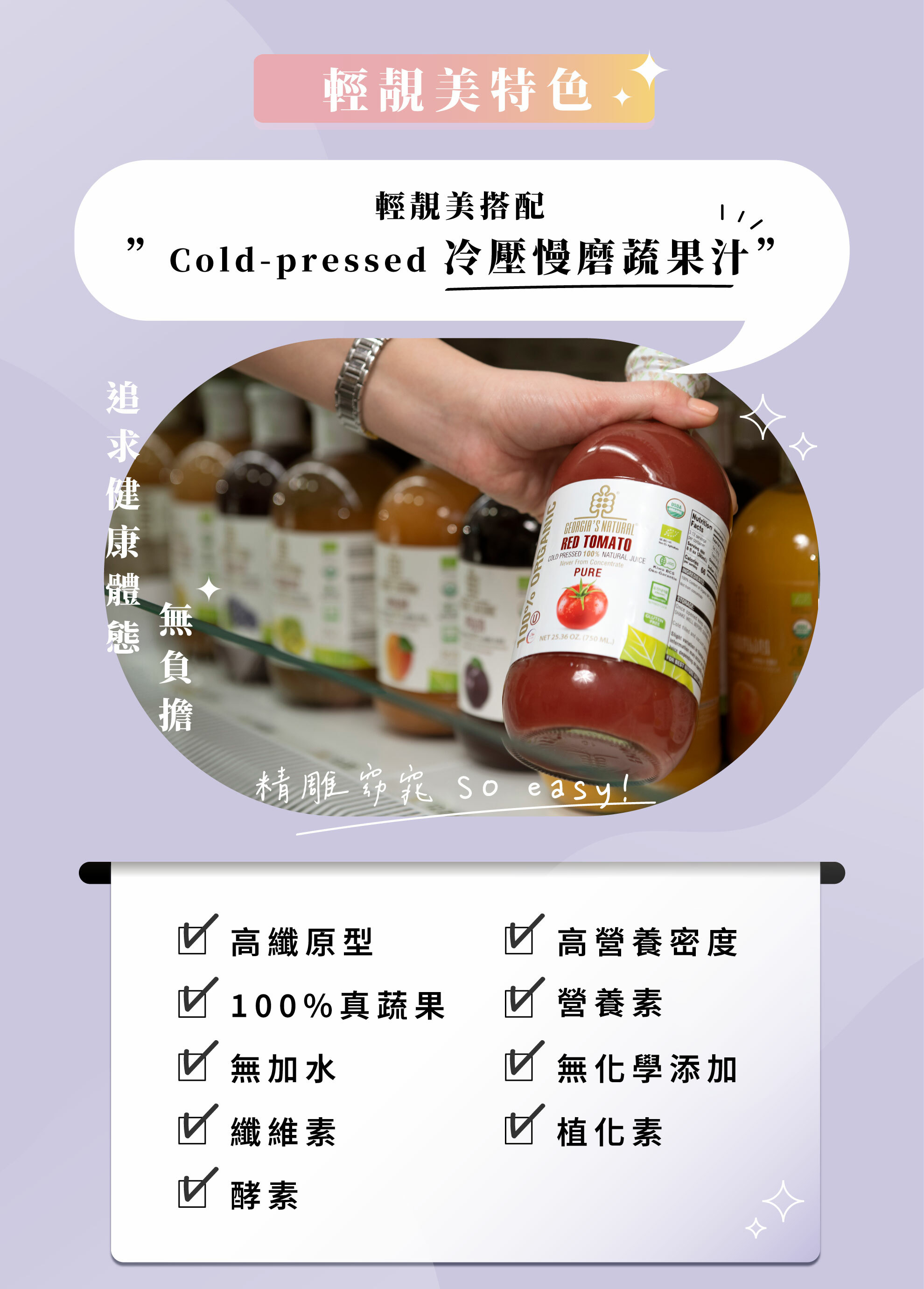 成份:甜菜根、黑蘿蔔、黃蘿蔔、蘋果、西洋梨、生薑、檸檬(原汁含有率100%)