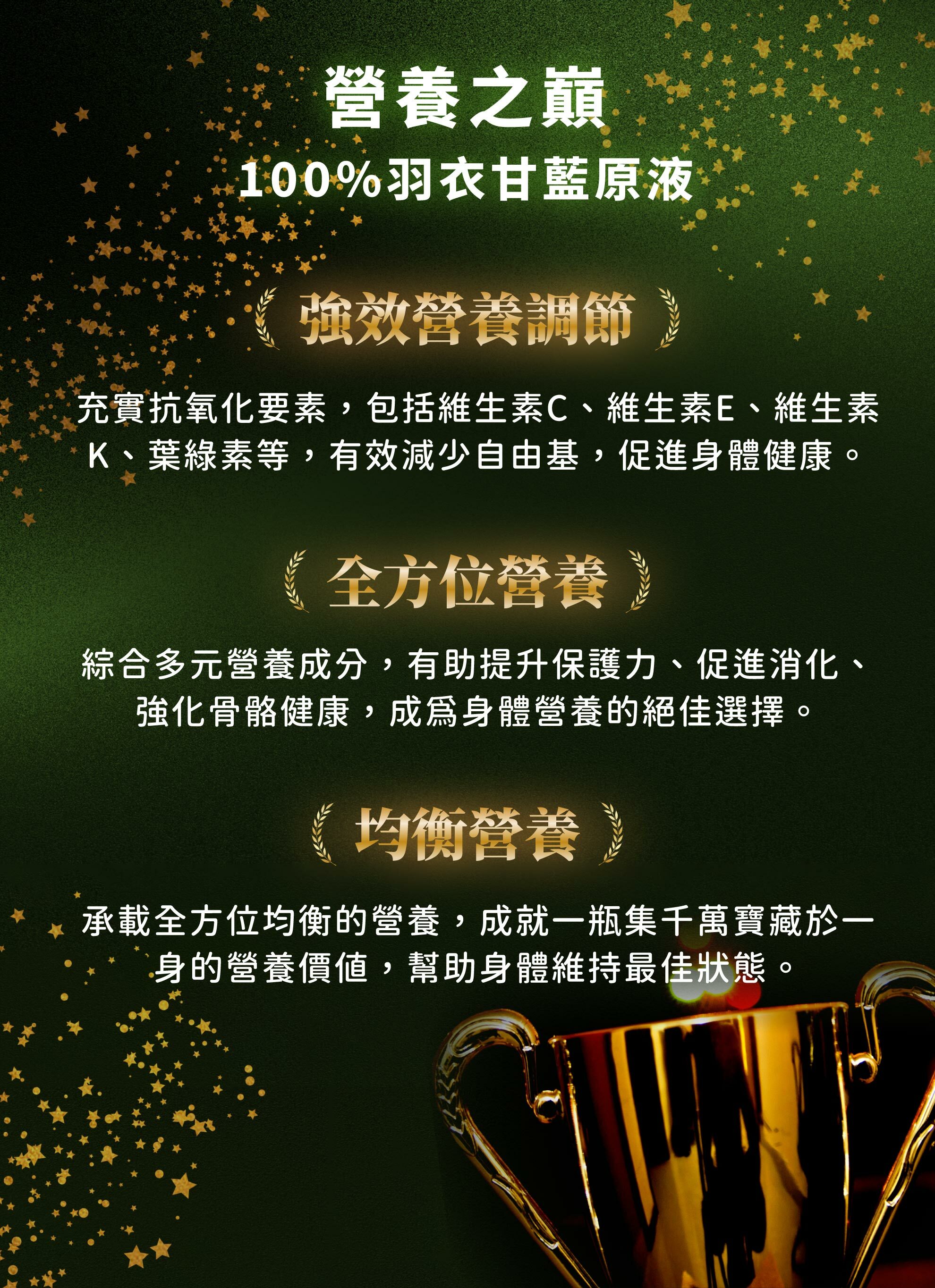 無加糖、無加水、非濃縮,含量100%原汁,每日補充100毫升補足綠蔬菜營養,也可搭配輕斷食,每天飲用十字花科蔬果植化營養,每日超級食物保健,全家都能飲用。