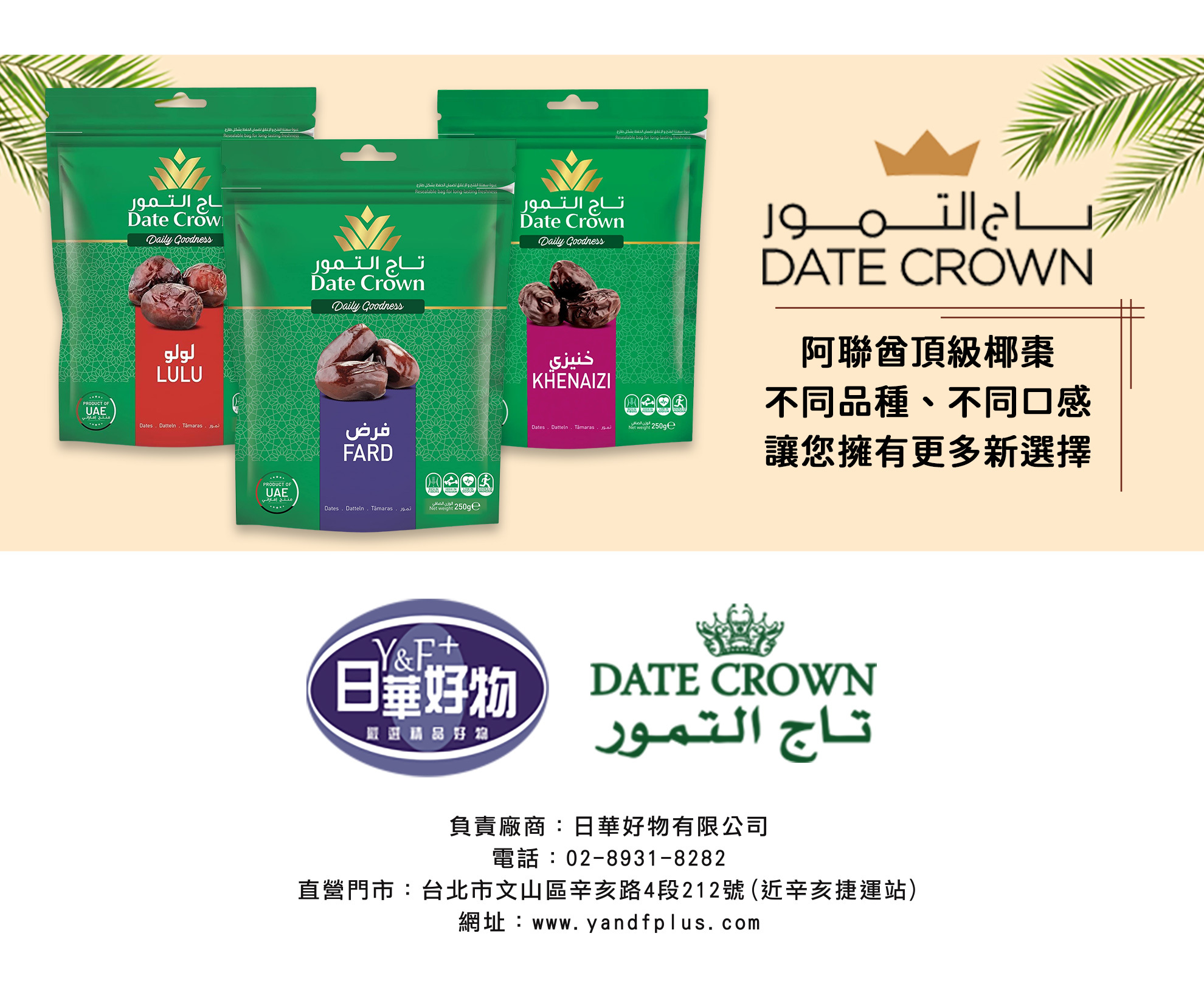嚴選阿聯酋國營品牌CROWN椰棗,是中東椰棗權威,100%天然椰棗,非伊朗椰棗,經天然風乾日曬,保留椰棗天然養分,無添加糖、無任何添加物,農藥殘留、大腸桿菌檢驗合格,食用安心。