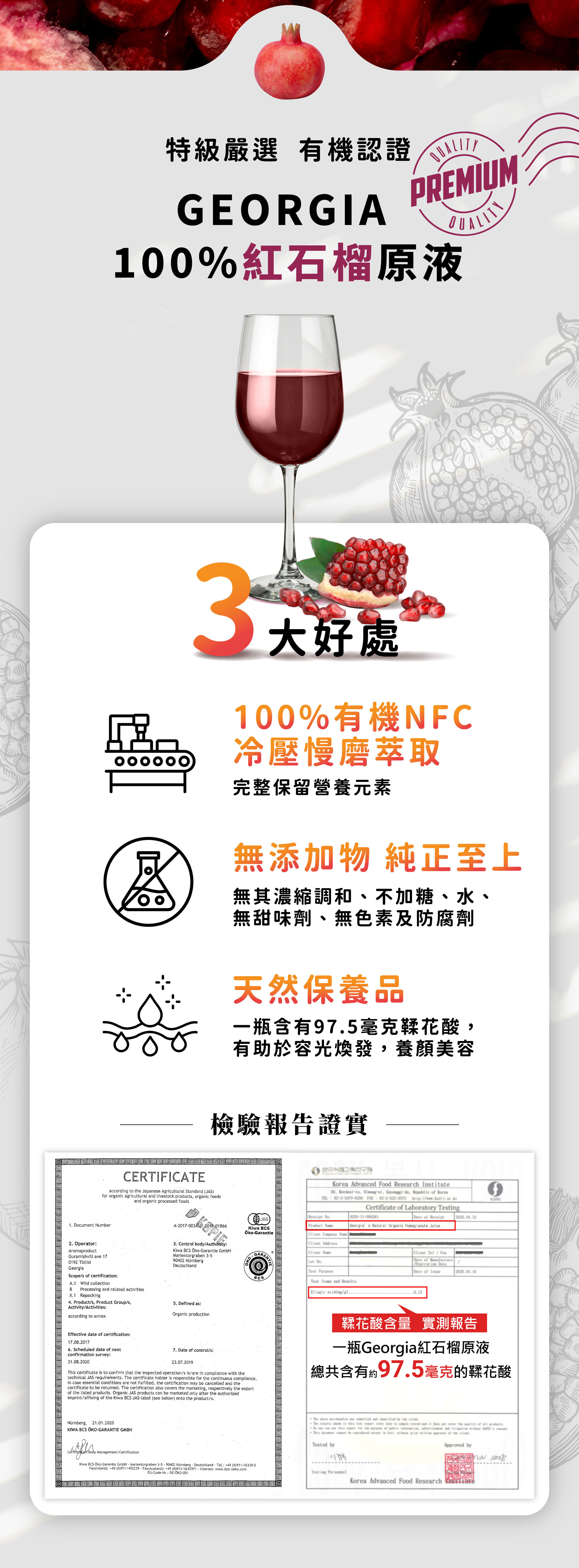 品名:Georgia有機紅石榴原汁