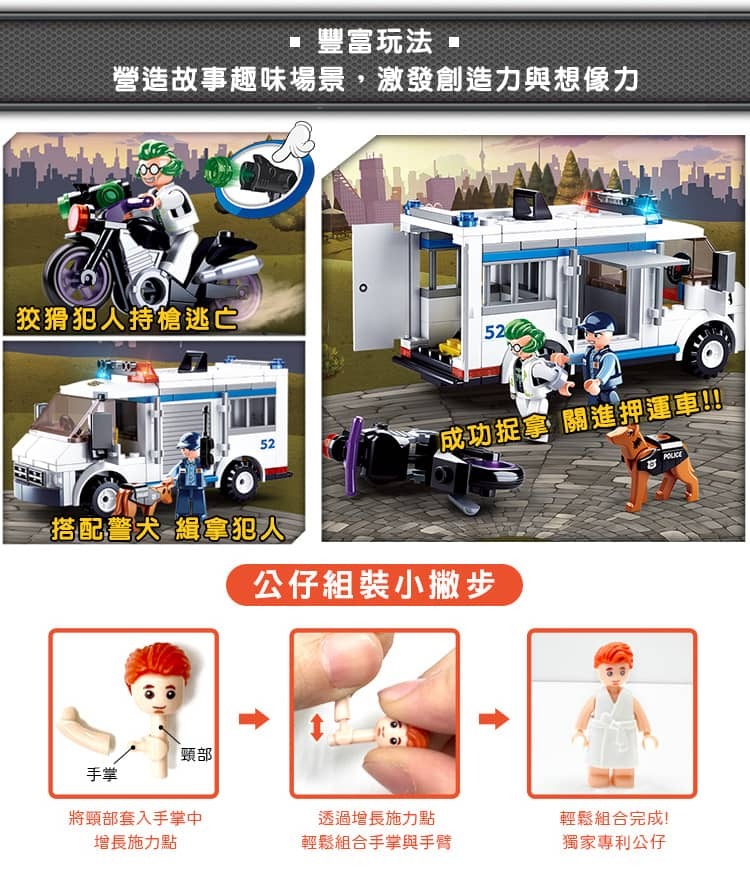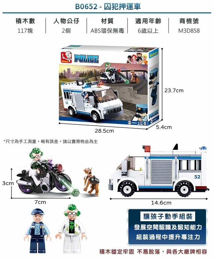 品名:Sluban男孩積木-囚犯押運車B0652