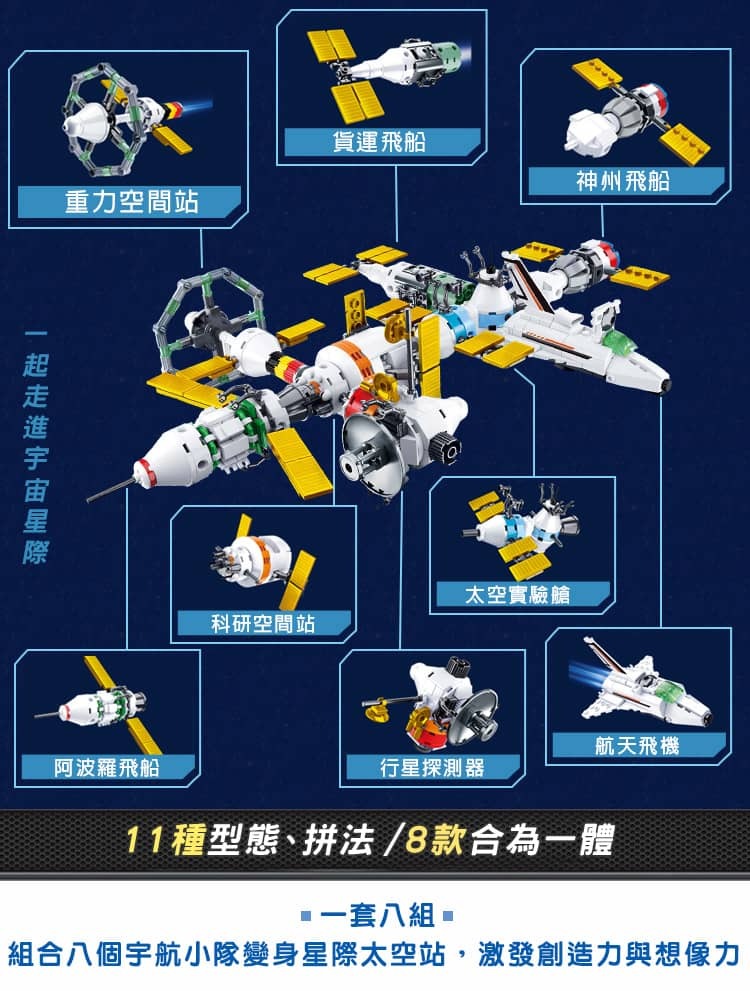 .八合一可組成國際太空站,探索天際