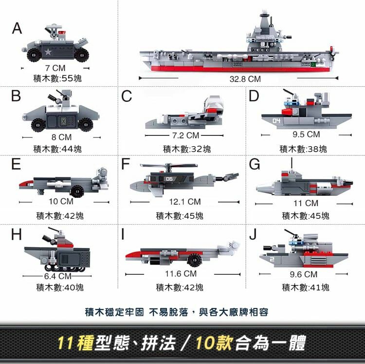 ,每款附人偶,十合一可組成巡洋艦艇積木
