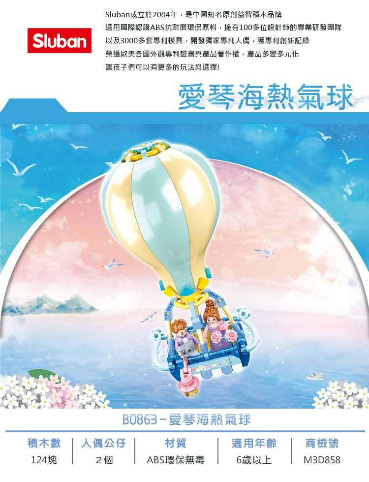 品名:Sluban女孩積木-愛琴海熱氣球B0863