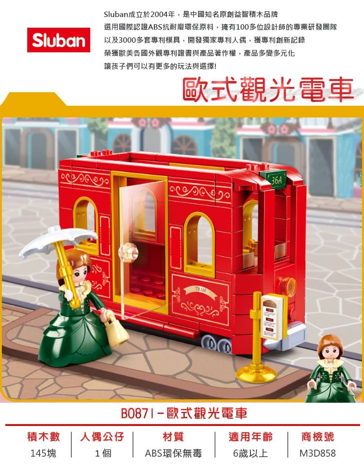 品名:Sluban女孩積木-歐式觀光電車B0871