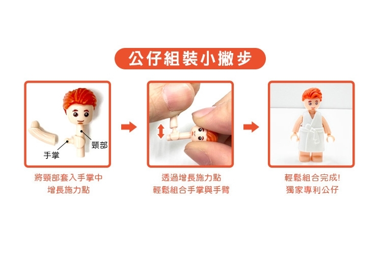 Sluban擁有100多位設計師的專業研發團隊,擁有3000多套專利模具,與LEGO樂高積木採用同樣先進生產設備,開發獨家專利人偶,採用高仿真技術,實現頭部、手腕向四周15度、腰部360度旋轉!形象如同真人,孩童人偶的腿部實現180度擺動,人偶專利創新記錄,榮獲歐美各國外觀專利證書與產品著作權。