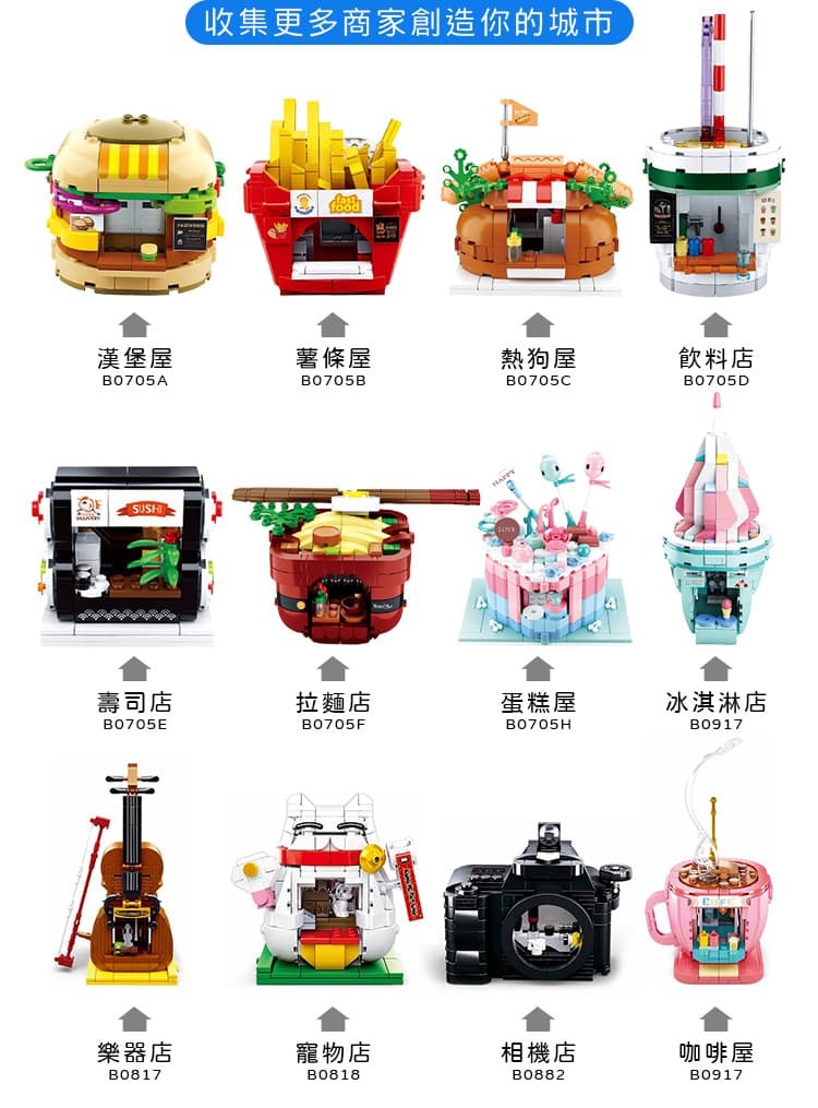 .創意街景積木,精緻立體可展開,與其他款式結合美食街