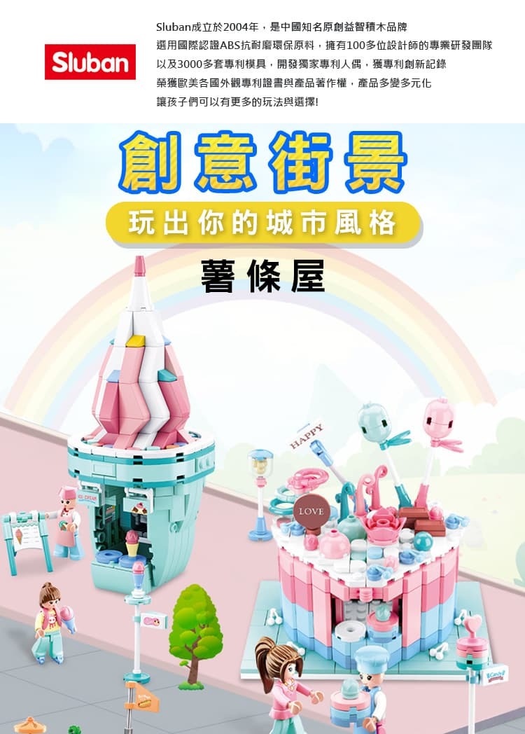 Sluban成立於2004年,是中國知名原創益智積木品牌,在中國的銷售量僅次於LEGO樂高積木,全系列選用國際認證ABS抗耐磨環保原料。